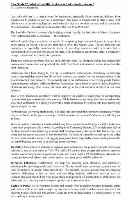 Solved Case Study 7 What Is Last Mile Problem And Why Chegg Com